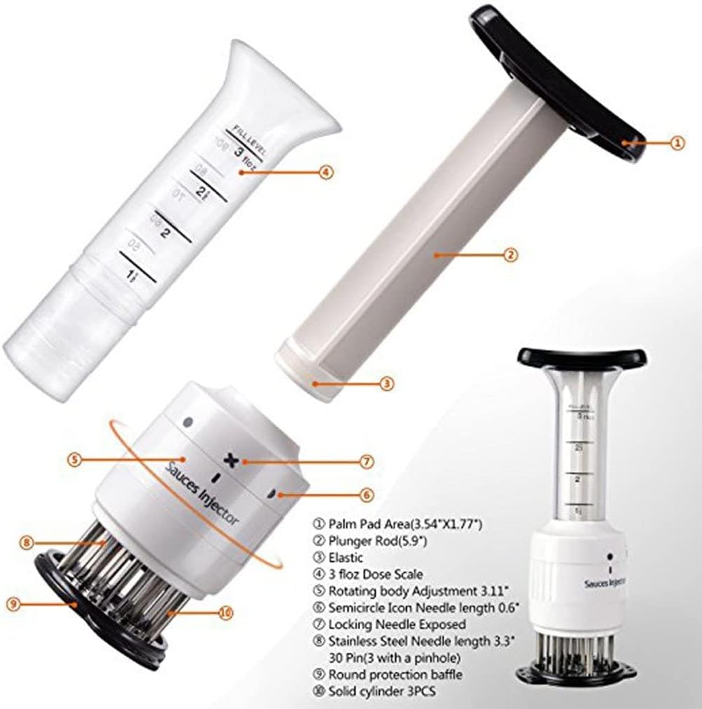 - ✅ Sturdy & Durable – Designed with a strong marinade injector plunger for better pressure control. Adjustable depth settings allow for precision when injecting marinades into different meat thicknesses. Built to last, so you can enjoy flavorful cooking for years.