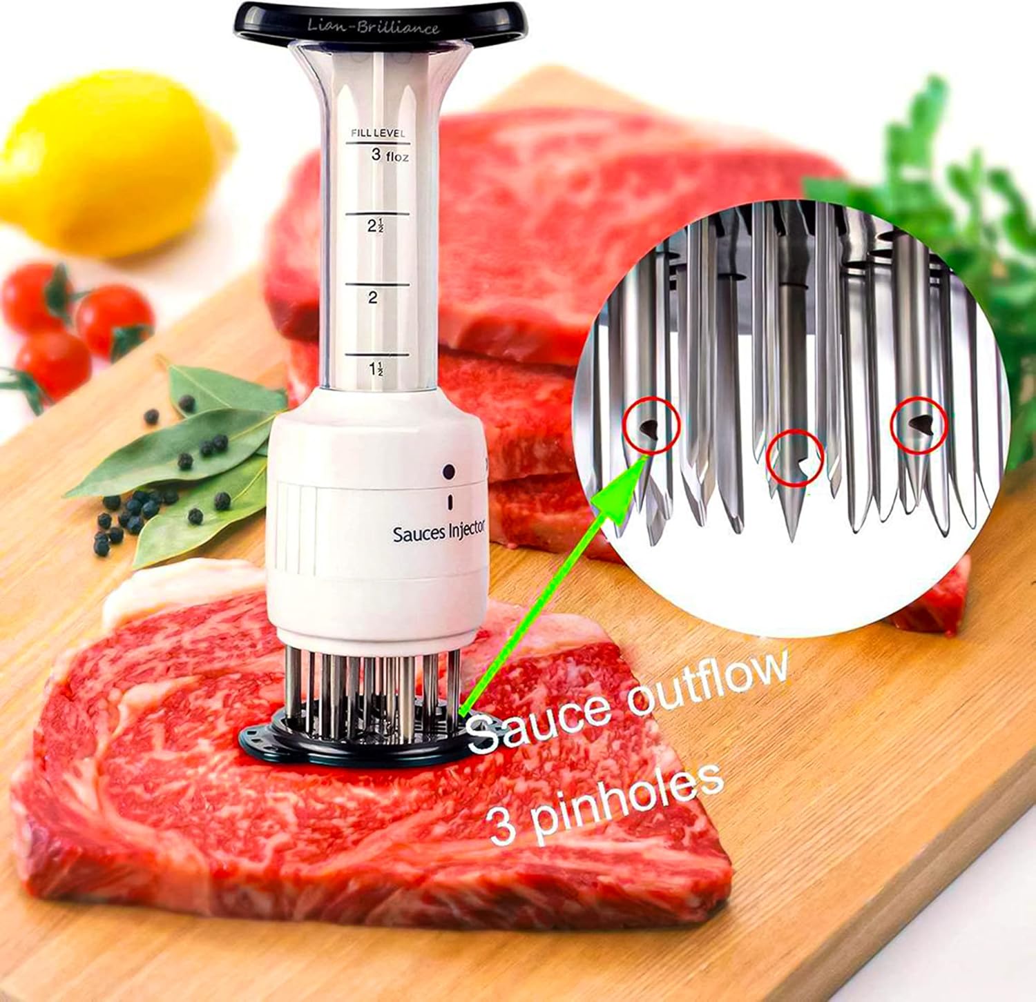 - ✅ Enhanced Flavor Infusion – The meat marinade injector ensures deep penetration of seasonings, sauces, and marinades, enhancing the taste and tenderness of your favorite meats. Perfect for barbecues, roasts, and grilling.